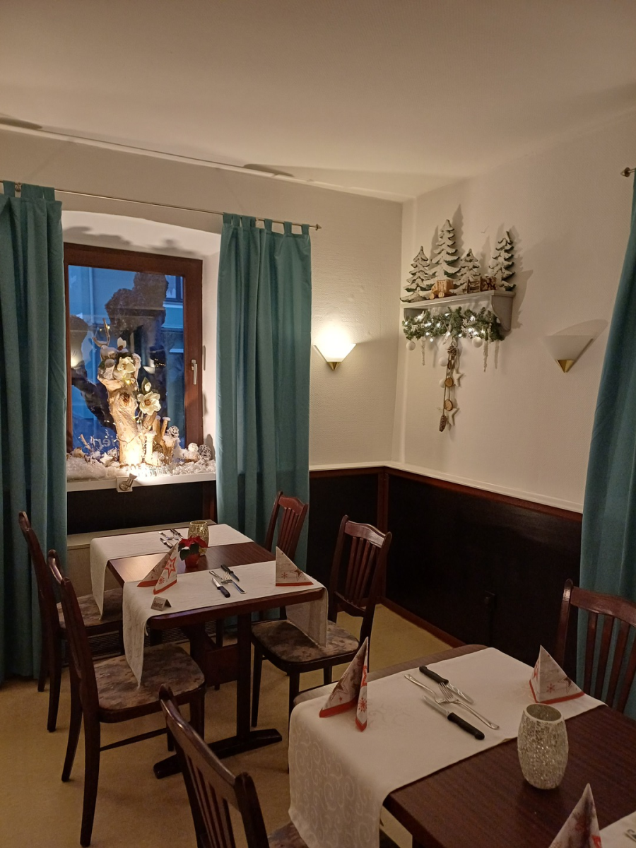In klimatisierten, saisonal dekorierten Räumlichkeiten bieten wir Ihnen Platz für Gesellschaften bis 35 Personen und stellen Ihnen gerne auch den Rahmen für familiäre oder betriebliche Festivitäten.